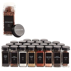 12 סט שייקר זכוכית סט-בקבוקים מרובעים עם כיסי במבוק/שחור/כסף לתיבול, קפה & bbq