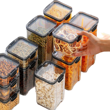 Hava geçirmez PET malzeme kuru gıda saklama kabı seti partiler için tahıl ve kuru gıda için mutfak organizatörleri